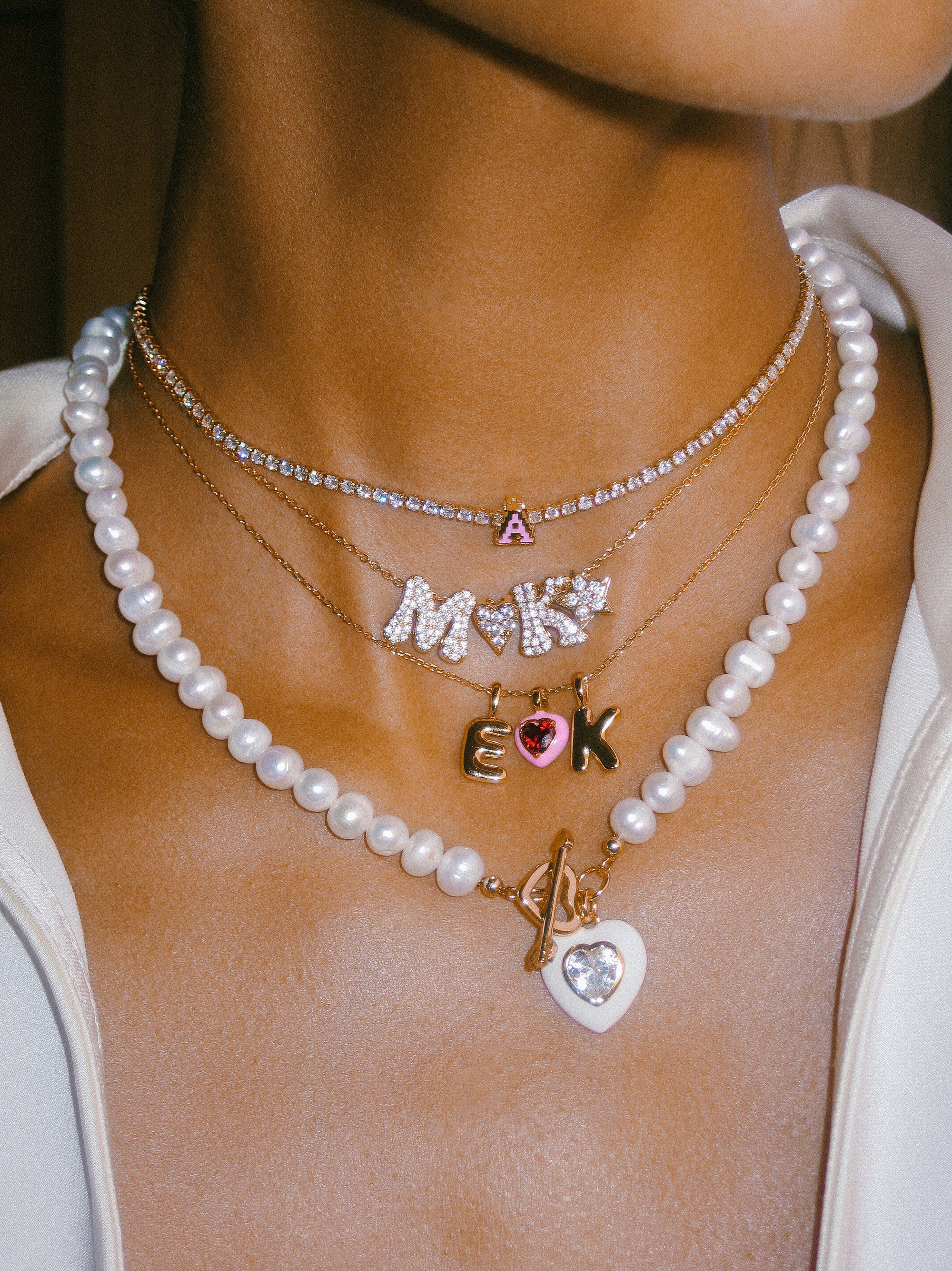 MICROPAVE INITIAL PEARL NECKLACEMICROPAVE INITIAL PEARL NECKLACE